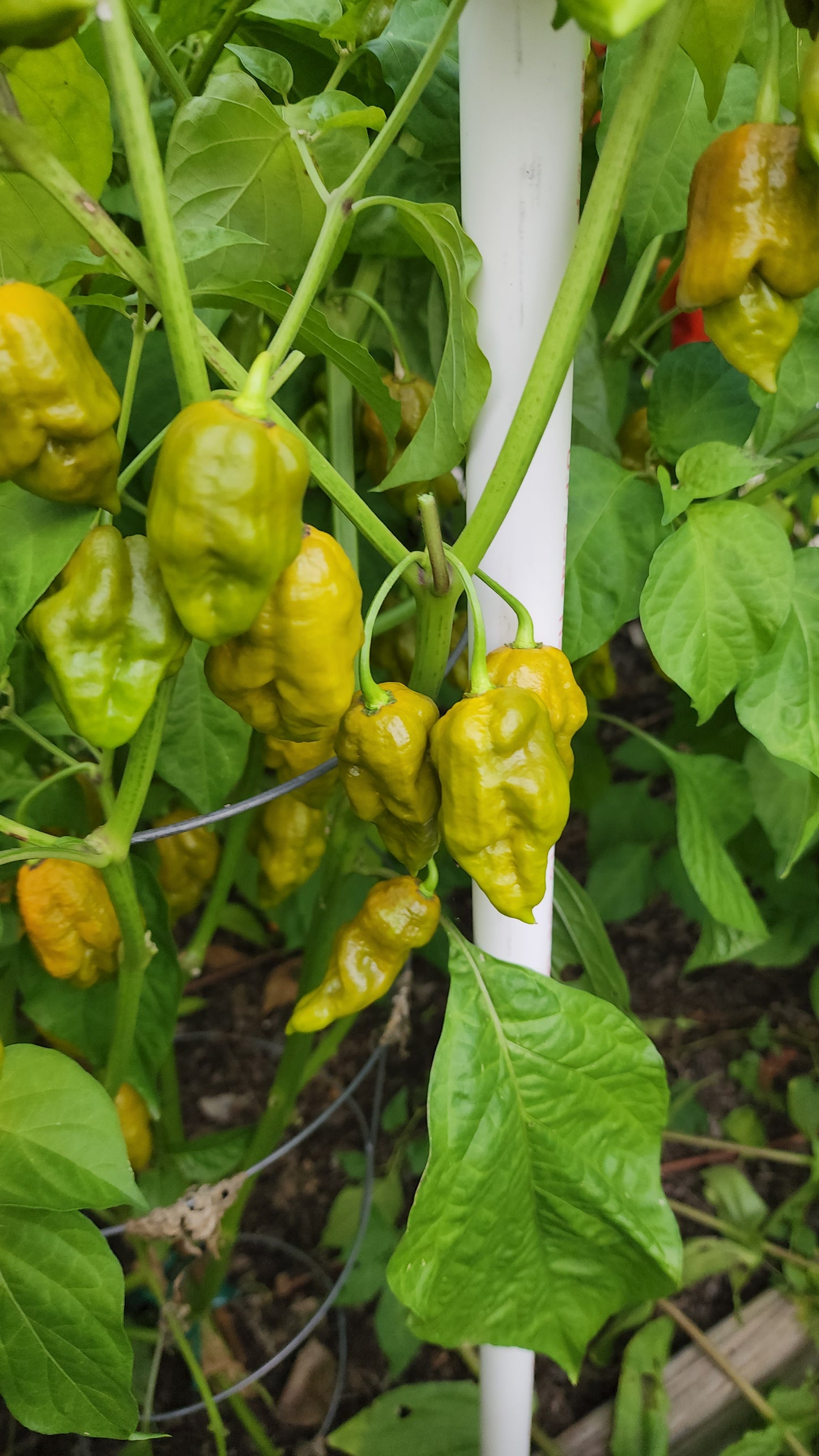 The Gator Jigsaw is a unique pepper that ripens to green. The huge pods are really stunning, they hide within the folage so well! Before you know it, you'll notice a plant full of these heavy ripe green pods! Pay attention so they don't rot on the bush! The color change is very subtle when ripe! The heat is scorching! At least a million on the Scoville Heat Unit scale. So definitely beware. Would make make for a great hot sauce!